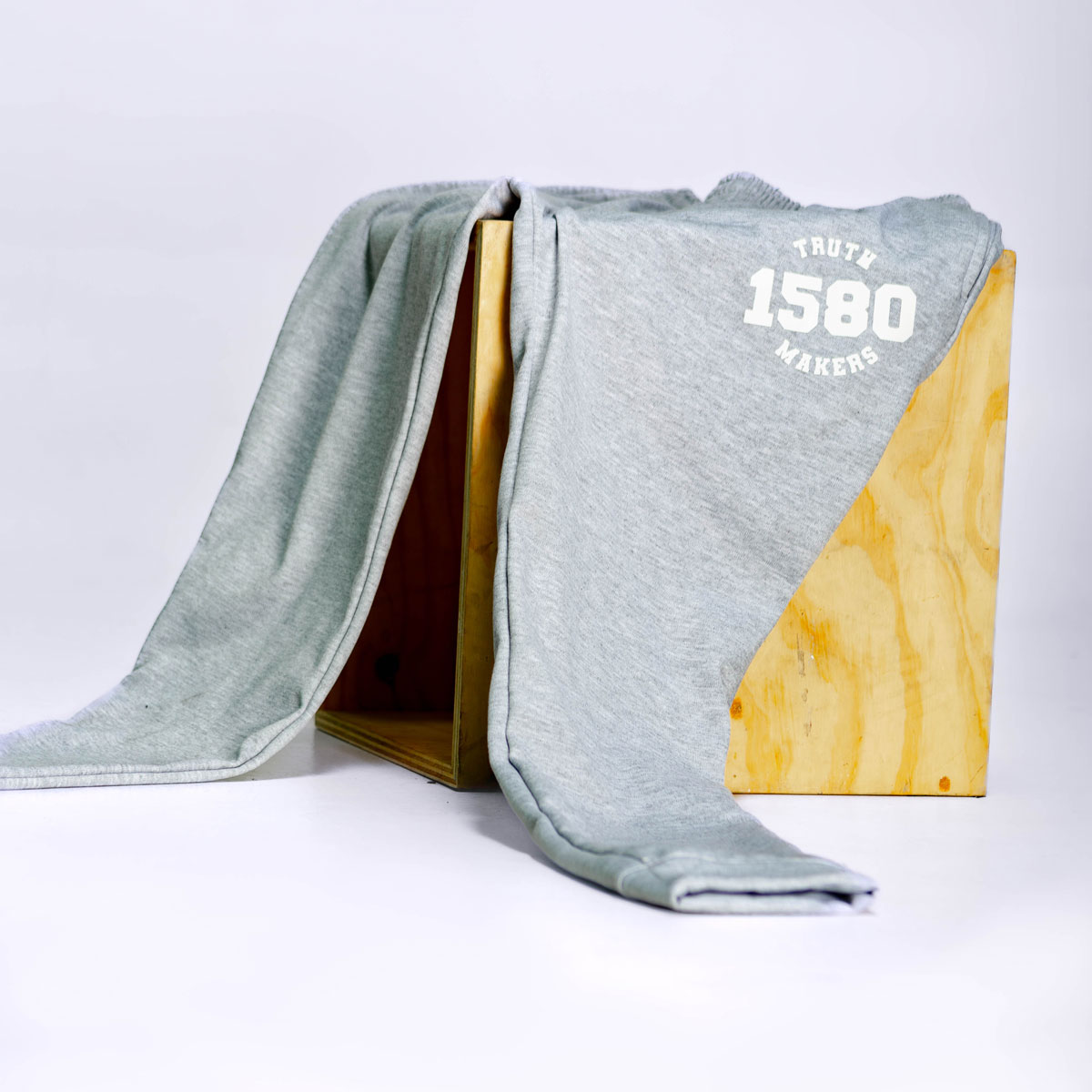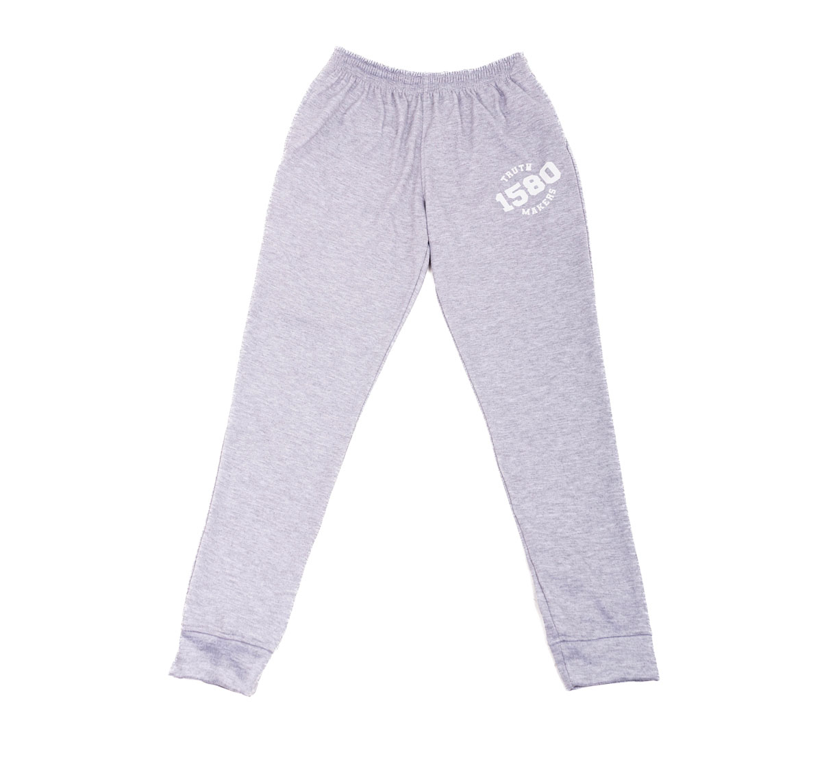 Jogger con bolsillos y estampado en parte superior frontal izquierdo, prenda color gris jaspe con contraste en tono blanco texto ” Truth Makers”. Material de tejido de punto flexible, suave y cómodo. Un look muy actual para ir al gym o incluso para un estilo sportif en el día a día.